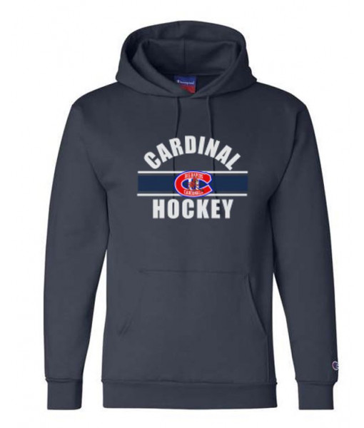 9-ounce 50% cotton/50% poly with up to 5% recycled poly from plastic bottlesDouble Dry technology wicks moisture Two-ply hood with dyed-to-match drawcords 1x1 rib knit sleeve cuffs and hem Front pouch pocket Embroidered Champion C logo at left cuff Woven back neck label